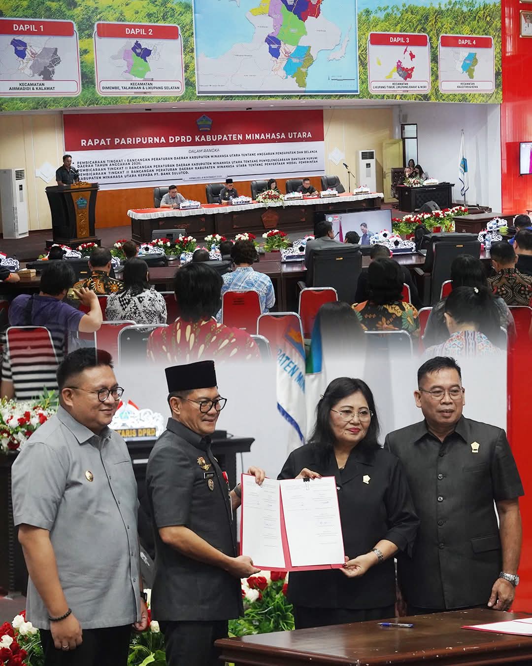 Rapat Paripurna yang dipimpin langsung oleh Ketua DPRD Minut Vonny Romimpunu, membahas tiga agenda penting yakni, Pembicaraan Tingkat I atas Rancangan Peraturan Daerah (Ranperda) tentang Anggaran Pendapatan dan Belanja Daerah (APBD) Tahun Anggaran 2026, Pembicaraan Tingkat II atas Ranperda Penyertaan Modal Daerah kepada PT Bank SulutGo, serta Pembicaraan Tingkat II Ranperda Penyelenggaraan Bantuan Hukum.