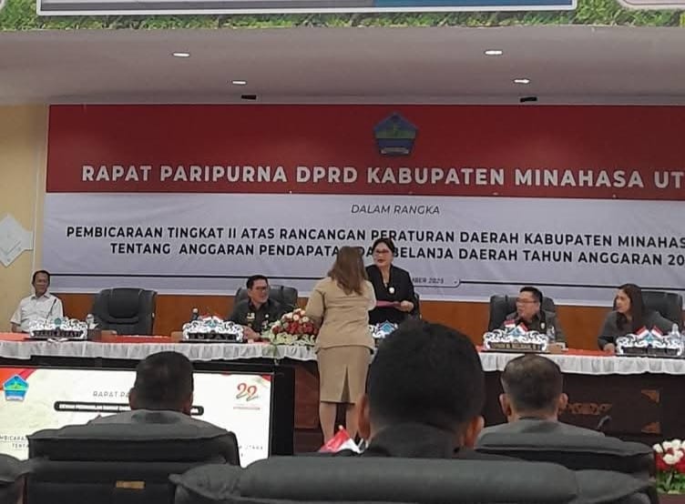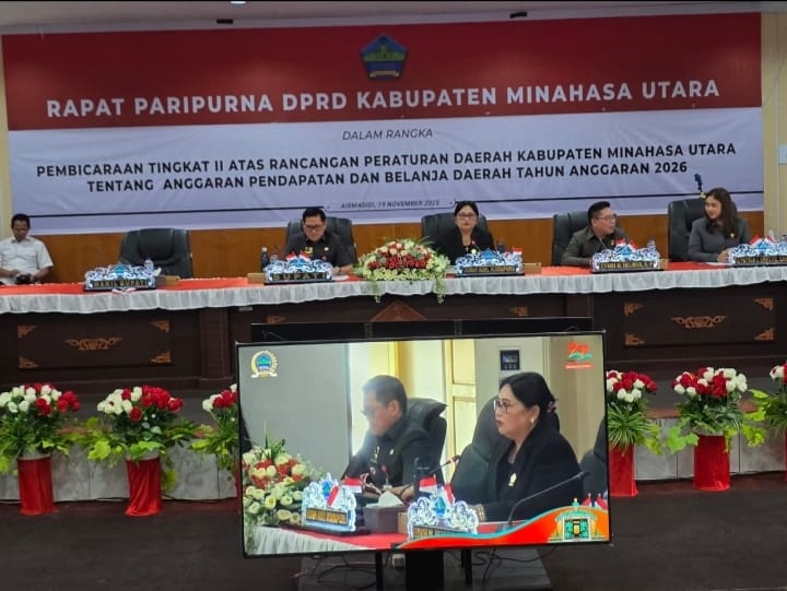 Kabarkawanua, MINUT– Dewan Perwakilan Rakyat Daerah (DPRD) Kabupaten Minahasa Utara menggelar Rapat Paripurna pembicaraan tingkat dua terkait Rancangan Peraturan Daerah (Ranperda) APBD Tahun Anggaran 2026, Rabu 19 November 2025.