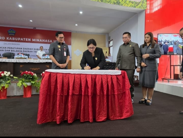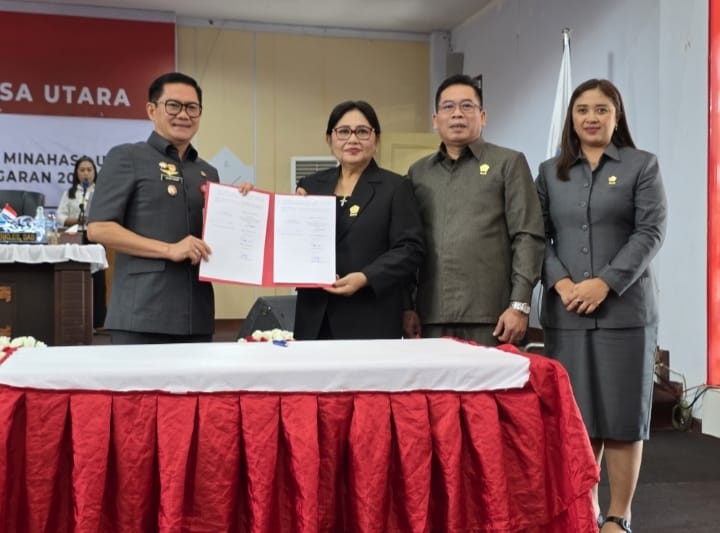 Dalam sambutannya, Bupati Minahasa Utara Joune Ganda menyampaikan apresiasi kepada DPRD yang telah bekerja keras menyelesaikan pembahasan APBD di tengah dinamika fiskal nasional.