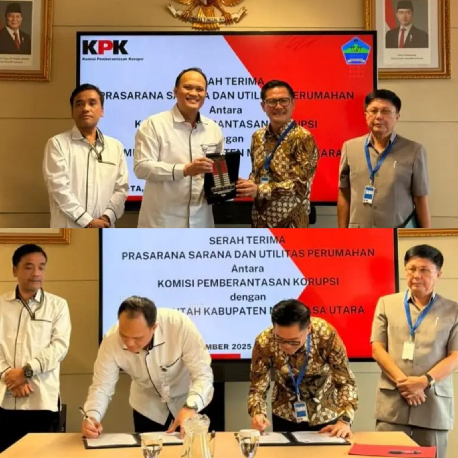 Kabarkawanua, MINUT– Komisi Pemberantasan Korupsi (KPK) Republik Indonesia (RI), menyerahkan Sertifikat Prasarana, Sarana dan Utilitas (PSU) Kepada Bupati Kabupaten Minahasa Utara Joune Ganda, Selasa 3 Desember 2025, di gedung KPK RI di Jakarta.
