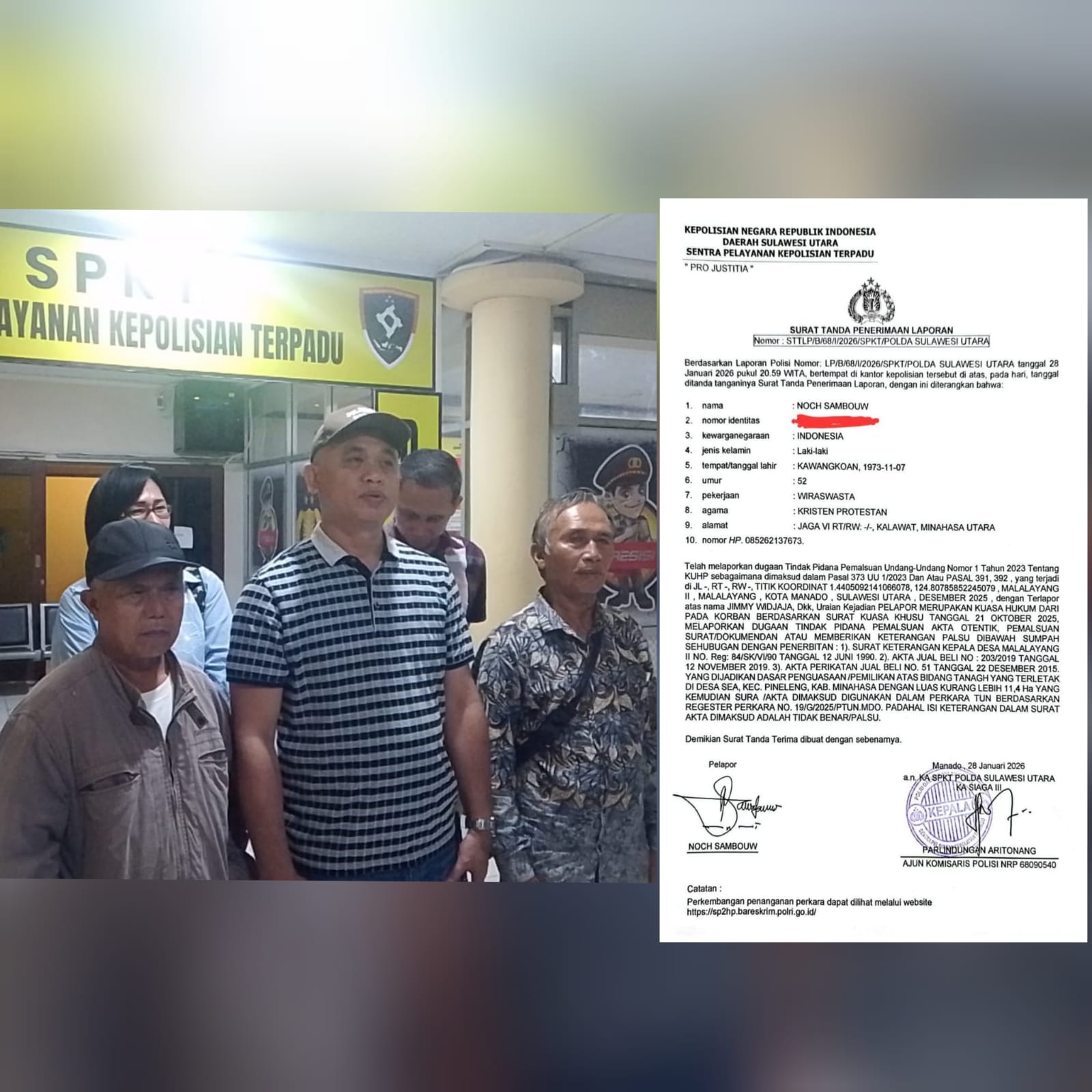 “Kami berani melaporkan mereka karena dalam persidangan perkara nomor 327/Pid.B/2025/PN Mnd keterangan saksi telah dibacakan oleh JPU sedangkan untuk bukti surat yang telah mereka ajukan sebagai bukti di PTUN Manado dengan nomor perkara 19/G/2025/PTUN Mdo,”(***)