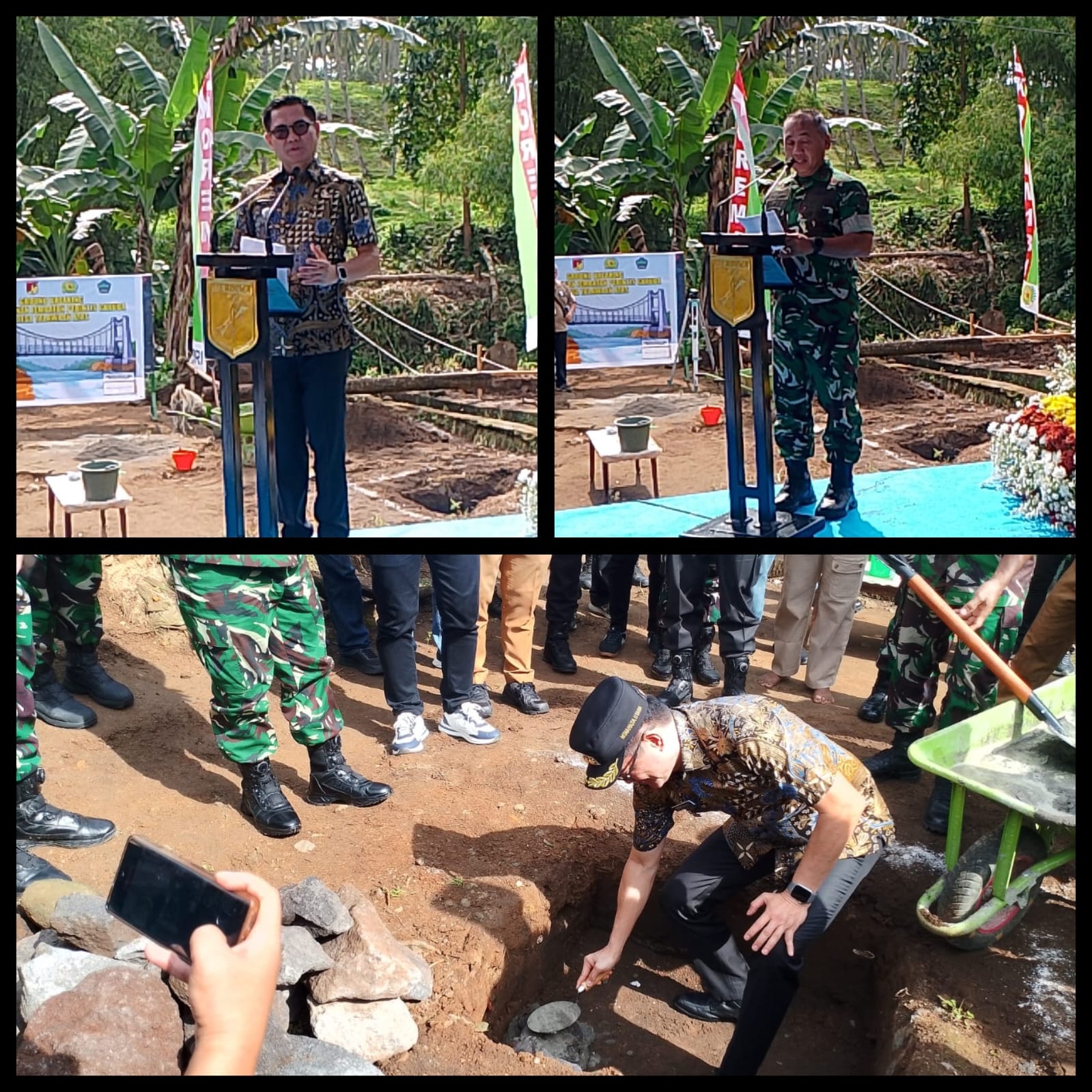 Mayjen TNI Mirza Agus, S.I.P.b dan Danrem 131/Santiago Brigjen TNI Martin Susilo Martopo Turnip, S.H., M.H, atas peran aktif militer dalam mempercepat pembangunan jembatan ini.
